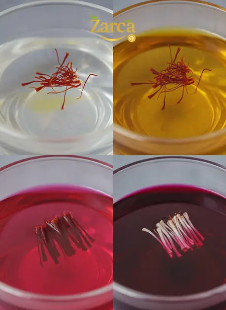 زعفران تقلبی: یا اصلاً رنگ نمیدهد (چون رنگ مصنوعی در دمای پایین واکنش نمیدهد) یا خیلی سریع و غیرطبیعی رنگ میگیرد.